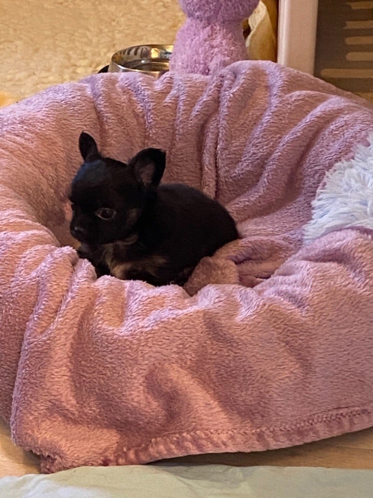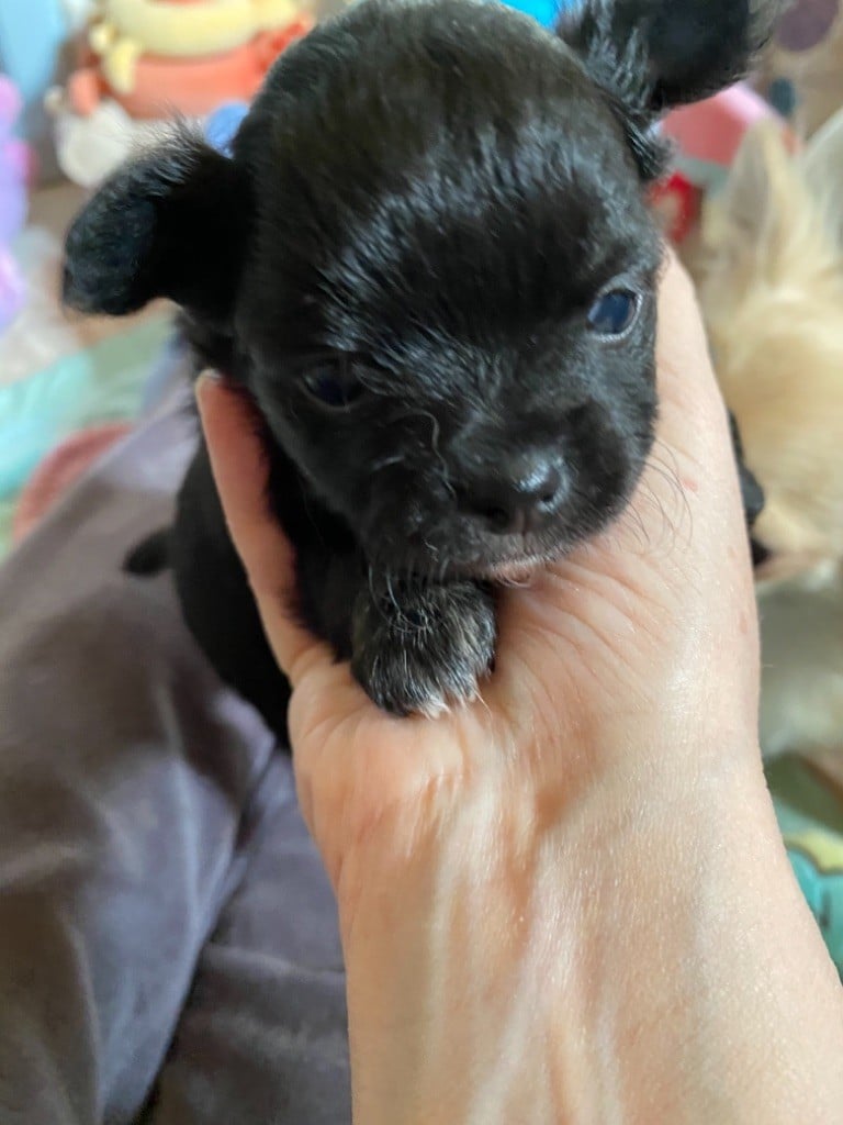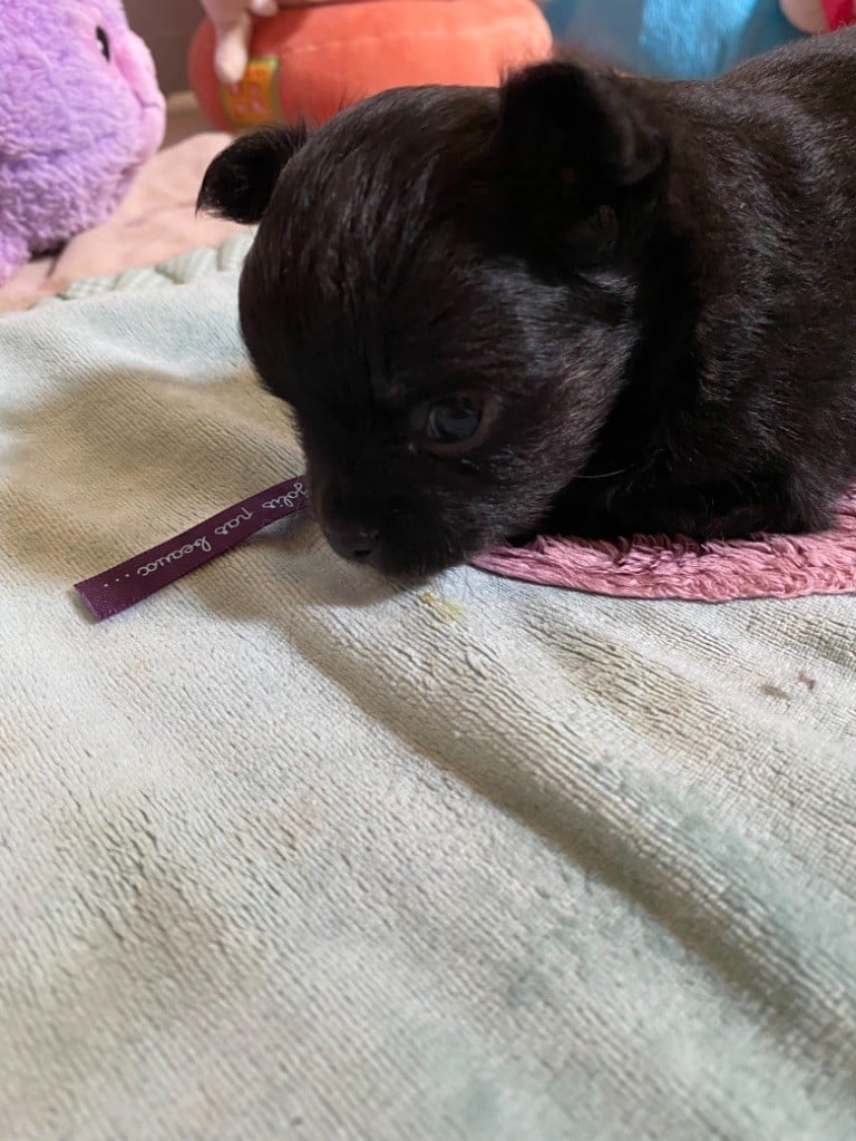 très jolie petite femelle noire qui sera très choyée dans sa nouvelle famille.